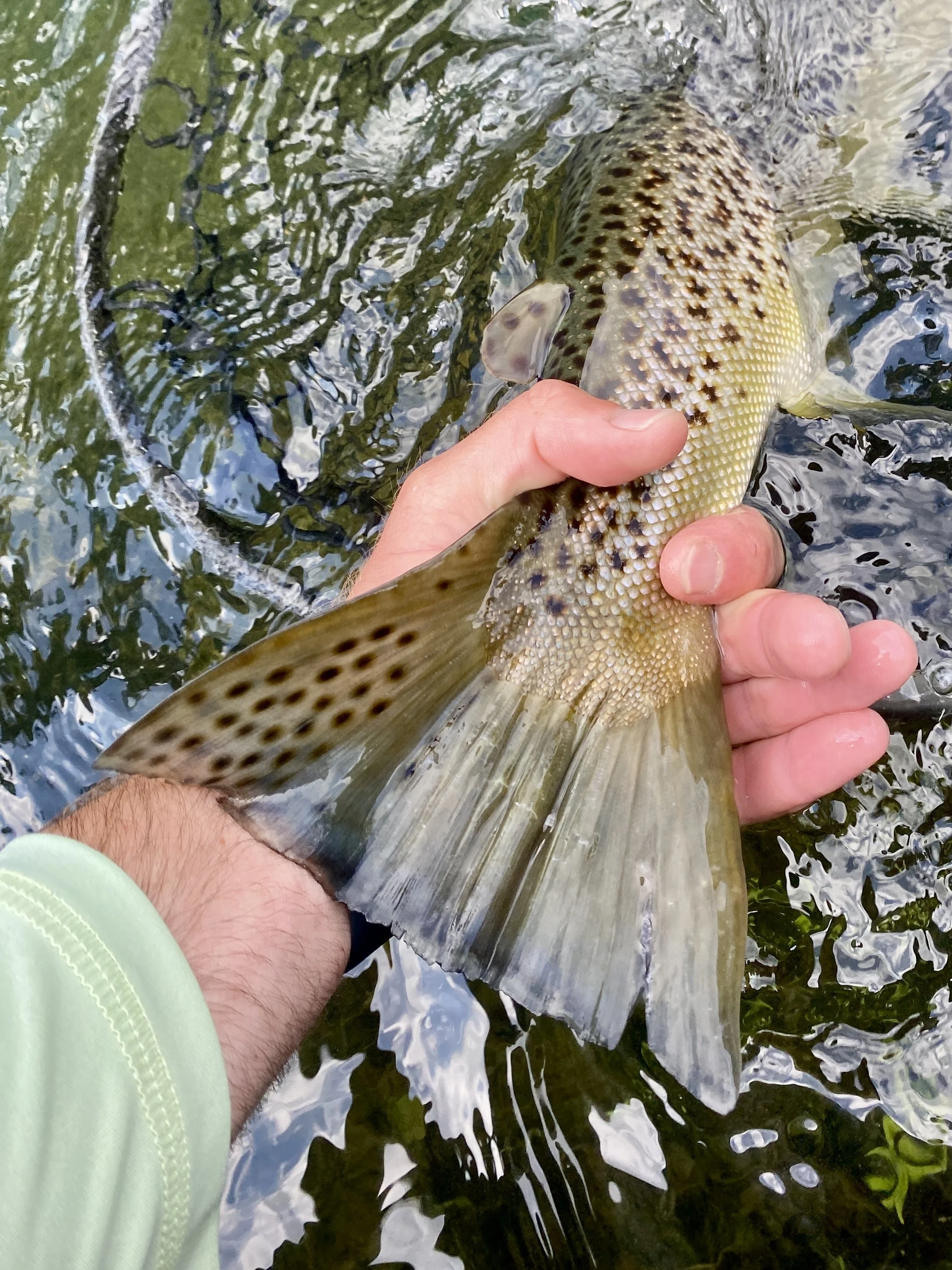 Even when the river appears quiet, fish still feed consistently on subsurface insects. When hatches are sparse, switch to nymphing or try a dry-dropper setup with a small midge or mayfly nymph below. During non-hatch periods, trout tend to hold deeper and feed opportunistically. Slow, steady drifts with subtle patterns are usually more effective than flashy attractors.